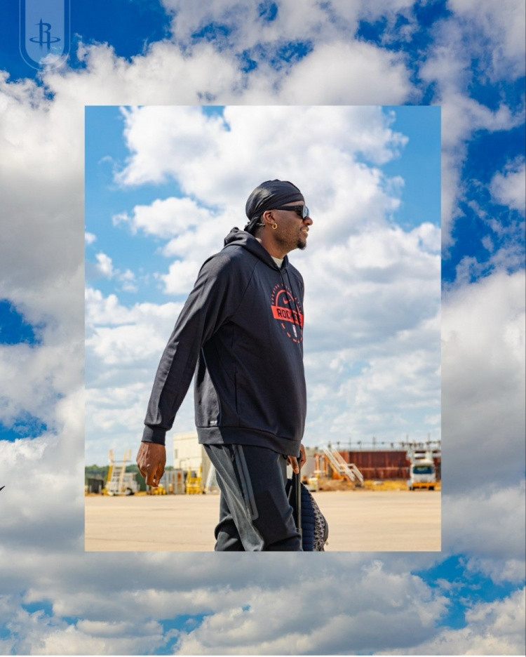 Handsome photos of Rockets generals boarding the plane: Durant wearing a green hat and Shen Jing’s hooded T-shirt in cute style