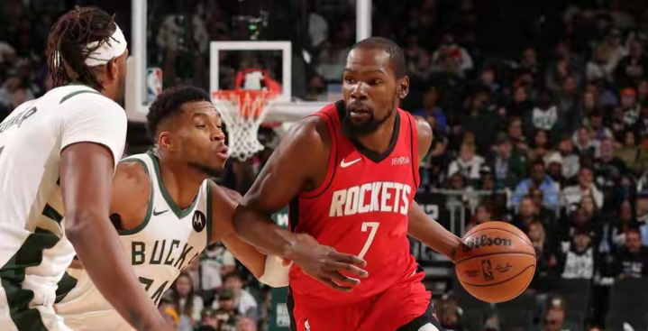The Rockets' dual-core Durant and Shen Jing dominated the game. Durant made 11 of 15 shots, 2 of 2 three-pointers, and 7 of 7 free throws without a single mistake. He efficiently scored 31 points, 3 rebounds, and 7 assists. He scored 15 points in the third quarter to set the tone for the counterattack. The key mid-range shot in the final quarter made the Bucks unable to recover. Shen Jing played 40 minutes and delivered a near-triple-double of 23 points, 11 rebounds and 7 assists. He played a pillar role on both ends of the offense and defense. The 2+1 toying with Antetokounmpo at the last moment became a classic scene of this game.