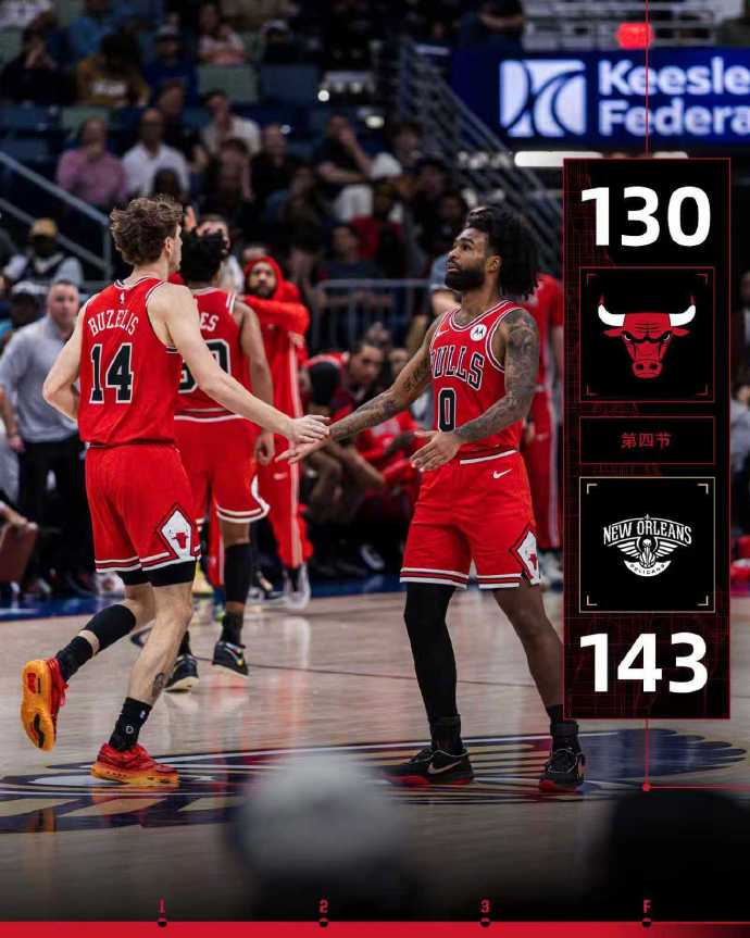 The Pelicans defeated the Bulls 143-130 at home today, finally ending their 9-game losing streak and avoiding a 10-game losing streak. But the Pelicans are still ranked last in the Western Conference with 3 wins and 15 losses. In addition, this is Borrego's first win since taking over as interim team coach. After the Bulls lost today, their record became 9 wins and 8 losses, tied with the Celtics, and temporarily ranked ninth in the Eastern Conference.