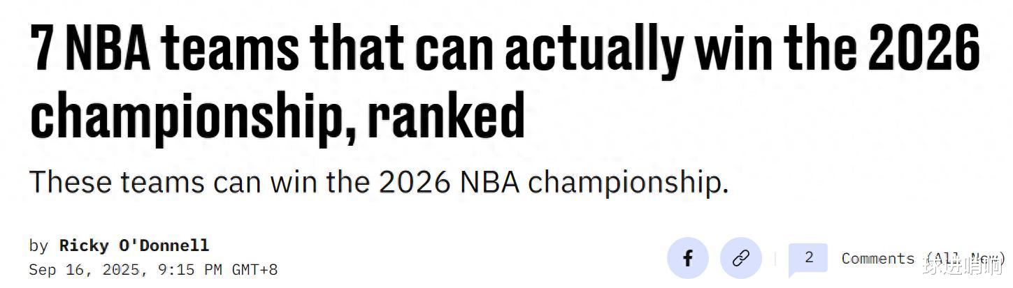 With less than two weeks left before the training camp for the new season, US media "Sbnation" has announced the seven potential favorite teams in the new season, including the Rockets soaring to third place, and the two favorite teams of the Lakers and the Warriors were unfortunately defeated.