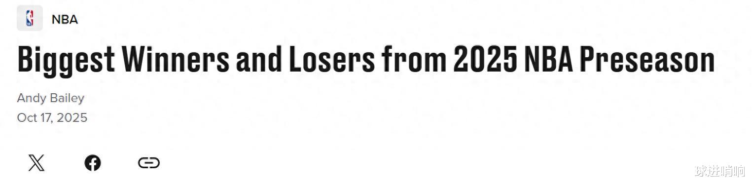 The NBA preseason has ended, and the regular season is about to officially begin. To this end, the US media "BleacherReport" announced the biggest winners and losers of the preseason. Among them, the Rockets' 4-game winning streak shattered doubts, and Wenban returned with full blood to compete for MVP.