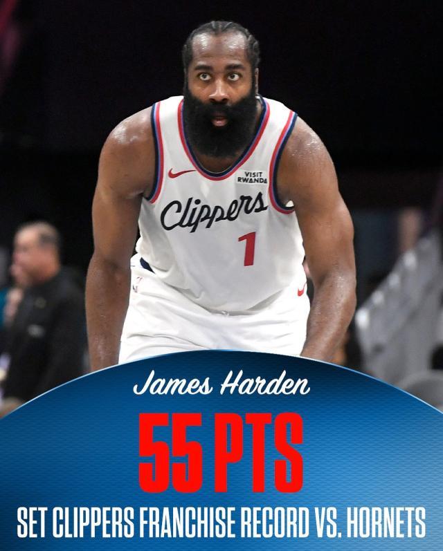In this battle, the 36-year-old Harden broke out in the first quarter, hitting 5 three-pointers and scoring 27 points in a single quarter, helping the team build a lead. The Hornets started hot, hitting seven of their first eight shots, but were quickly overtaken by the Clippers. After halftime, Harden had scored a league-high 35 points in a half this season.