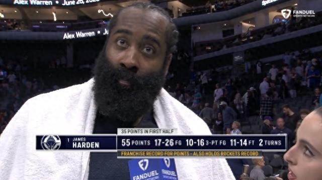 In the end, Harden scored 55 points, 3 rebounds, 7 assists, 1 steal, and 2 turnovers. He made 17 of 26 shots, 10 of 16 three-pointers, and 11 of 14 free throws. The 55 points were not only the 11th-highest single-game score in Harden's career, but also tied him with Jokic and Alexander to become the player with the highest single-game score this season.