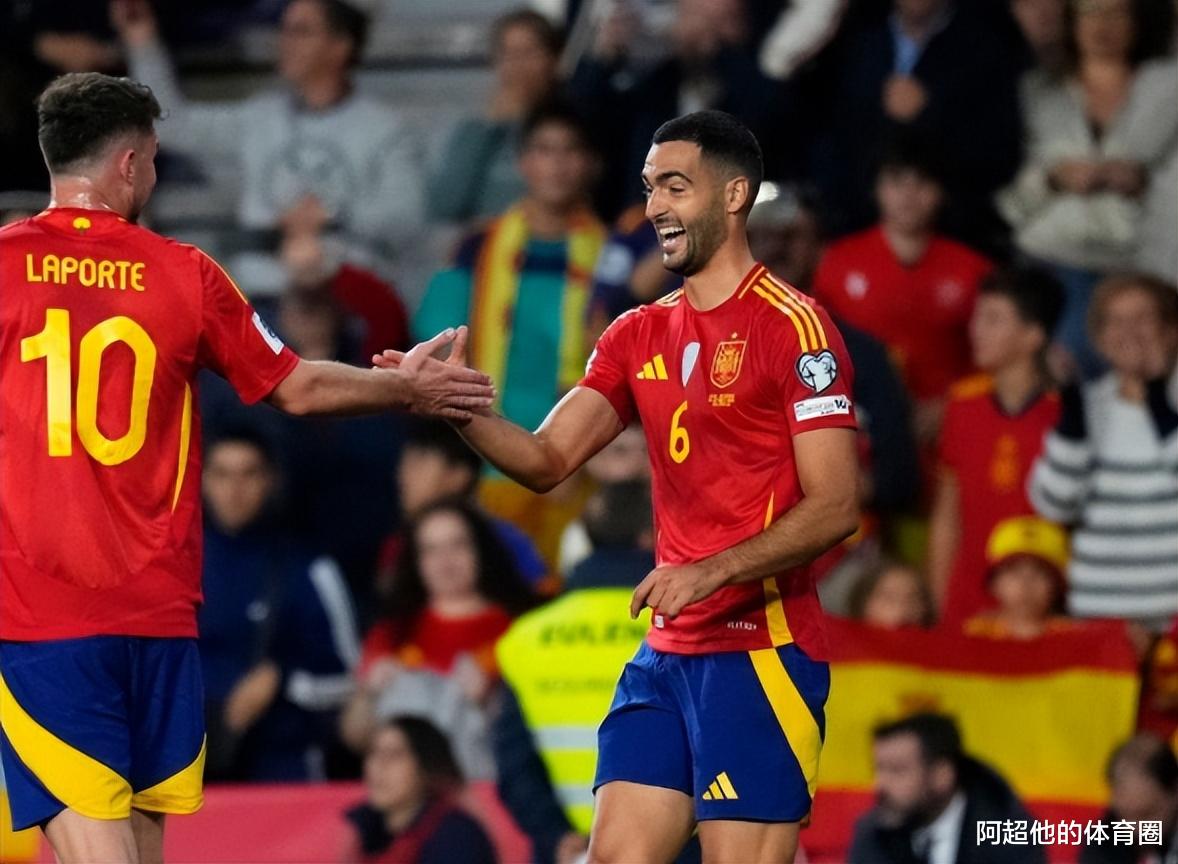 Spain won with 3 goals in the first round. Bulgaria has lost all 3 games so far. In the last round, it was even beaten 6:1 by Turkey at home! After the game started, Wusov, as the goalkeeper of Bulgaria, was not unexpectedly the busiest person; he made 5 key saves in the first half with high passes, but he was unable to defeat the four hands with two fists; in the 35th minute, Pedri passed the ball into the penalty area, Lenormand passed it with a header, and Merino scored with a header, 1:0! In the 57th minute, Grimaldo made a pass and Merino scored twice with a header, 2:0! In the 79th minute, Garcia swept in front of the goal, and Chernev made a clearance and scored an own goal; in the 92nd minute, Merino created another penalty kick opportunity, and Oyarzabal fired a penalty to fix the score at 4:0! Spain has won 4 games without conceding a goal and is only one step away from qualifying for the World Cup.