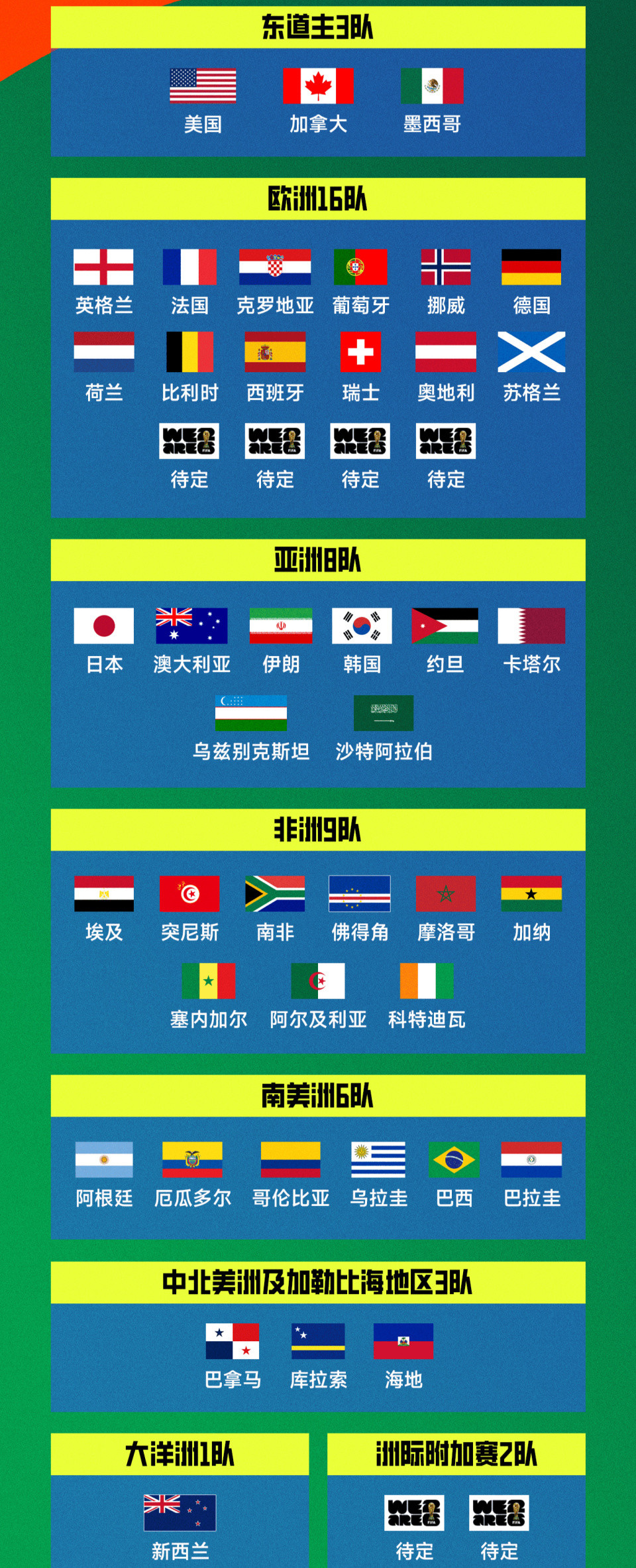 All 42 direct seats for the World Cup are confirmed: the island with a population of 150,000 sets a history! 22 teams compete in the play-offs to compete for the last 6 seats
