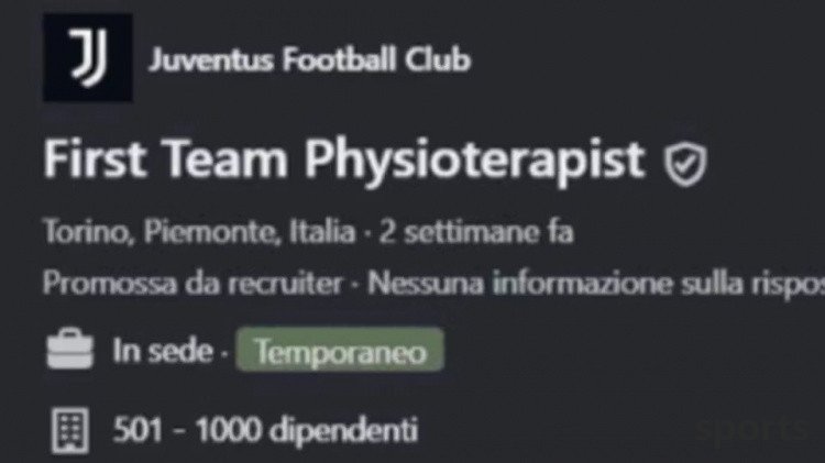 July 18th According to the Turin Sports Daily, Juventus recruited first-team physiotherapists on the LinkedIn platform.