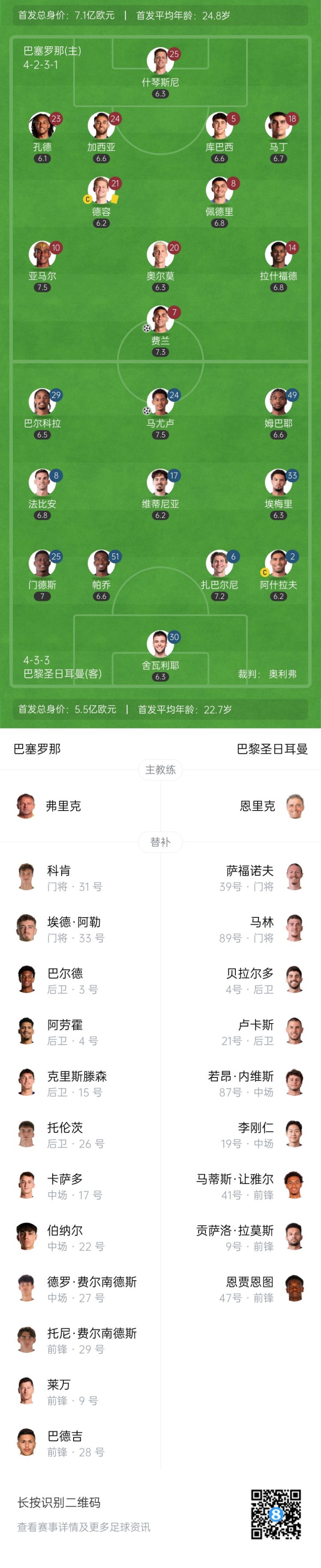 October 2nd News In the second round of the Champions League phase, Barcelona will face Paris Saint-Germain at home the Luis Conpanis Olympic Stadium. In the first half, Rashford assisted Ferran to take the lead, Zabarney cleared the goal line + missed the opportunity, and Mayulu equalized the score. After halftime, Barcelona 1-1 Paris.