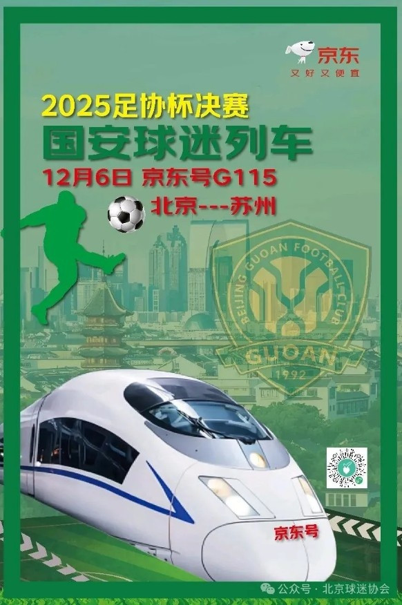 The Beijing Fans Association stated that after Guoan rushed into the FA Cup finals, the fans association learned that many Guoan fans would go to Suzhou to watch the FA Cup finals on December 6. After contacting the railway department, in order to ensure the travel of fans and promote consumption, the fans association actively We have greatly promoted the opening of the G115 Guoan fan watching train from Beijing South to Suzhou North from 9:10-14:23 on December 6. Guoan fans can now scan the QR code to purchase tickets from 15:00 on November 14 to 12:00 on November 16 to register. Tickets will not be refunded after registration.