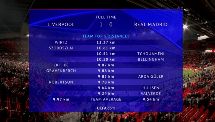 Liverpool vs Real Madrid running distance: Wirtz topped 11km, Sobo Bellin broke 10km