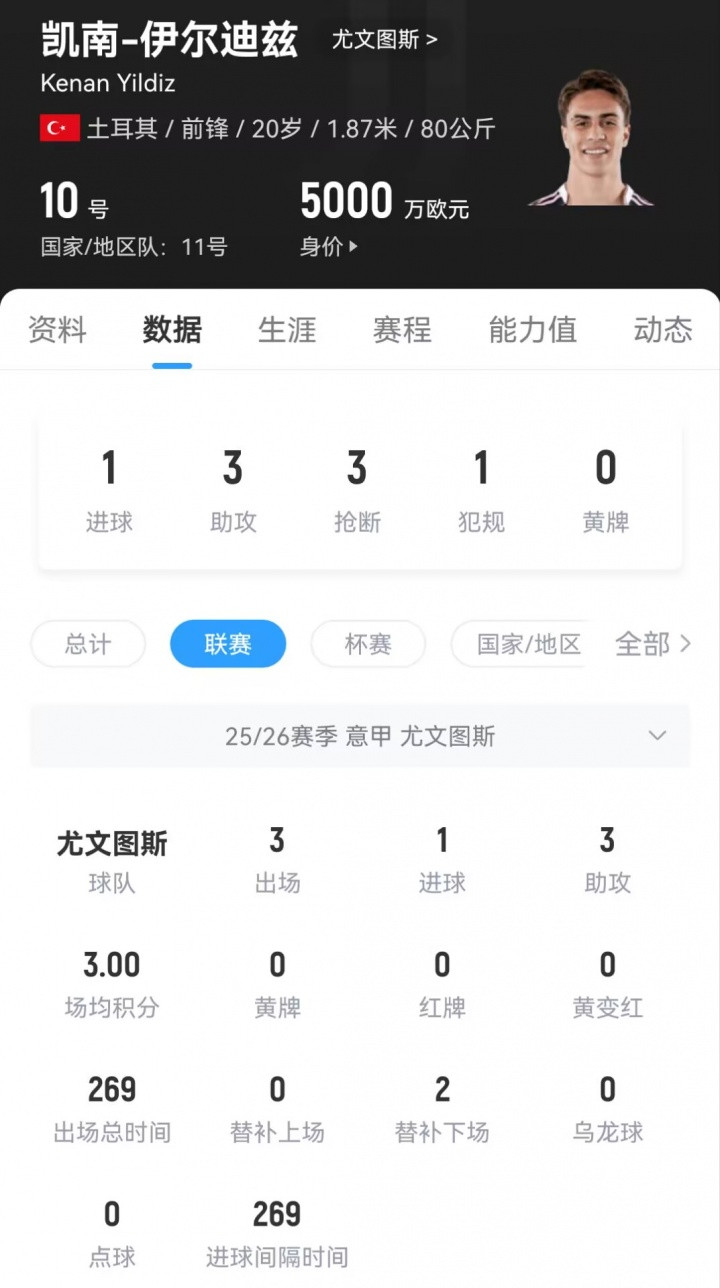 20-year-old Yilditz has contributed 1 goal and 3 assists for Juventus three appearances in the league this season, and his German turnover has reached 50 million euros.
