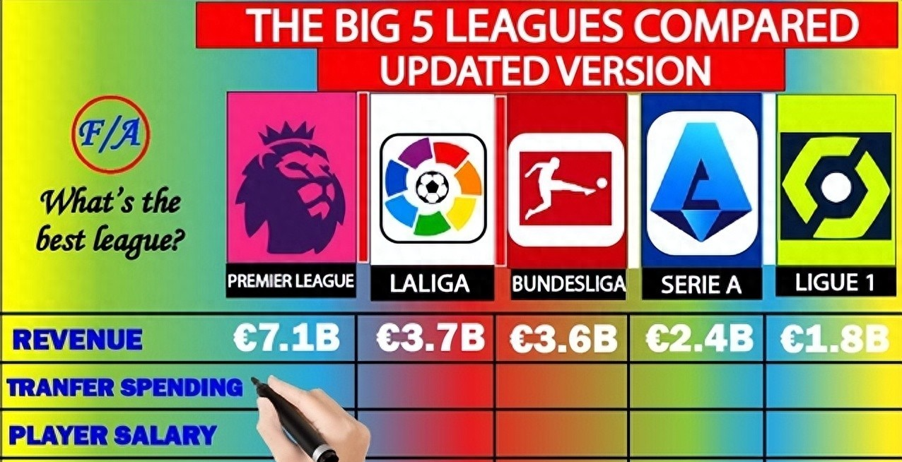 The Premier League is often called "Europe's most profitable football machine." Data shows that its total revenue in the 2023/24 season is as high as 7.14 billion euros, almost equal to the sum of La Liga (3.72 billion) and Bundesliga (3.62 billion). By the summer window of 2025, the net investment of Premier League clubs has soared to 15.12 billion euros - not only setting a new high in transfer spending in global football after the epidemic, but also leaving other leagues far behind.