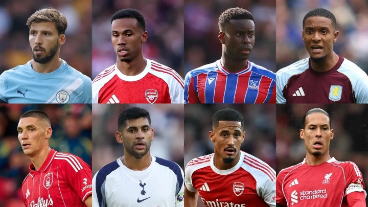 candidates include: Ruben Dias (Manchester City), Gabriel (Arsenal), Guy (Crystal Palace), Consah (Villa), Mirenkovic (Nottingham Forest), Romero (Spurs), Saliba (Arsenal), and Van Dijk (Liverpool).