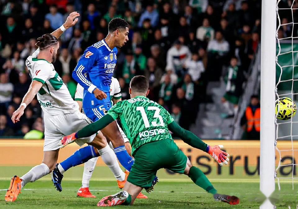 In the second half, Bian Yi fought again. In the 53rd minute, Varela sent a through ball with his heel. Fabas stepped forward from the left side of the penalty area and scored from a small angle. Elche led 1-0. In the 78th minute, Arnold took a corner kick from the right, Bellingham headed the ball, Huizen shot and scored, and Real Madrid equalized the score 1-1. In the 84th minute, Alvaro Rodriguez dribbled the ball to the top of the penalty area, shook off the defense and scored with a low shot, giving Elche a 2-1 lead. In the 87th minute, Bellingham hit the goal in the penalty area and was saved by the goalkeeper. Mbappe knocked back from the bottom line. Bellingham outflanked and pushed the goal, and Real Madrid equalized 2-2. In stoppage time, Cuestra fouled and received a second yellow card and was sent off. In the end, the game ended with Real Madrid drawing 2-2 away from Elche.