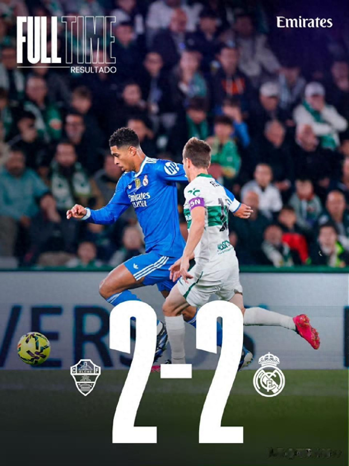 In the early morning of November 24th, the 13th round of the 25/26 La Liga season continued, ushering in a focus battle! Real Madrid plays Elche away from home. In the first half, the two sides exchanged offense and defense, but neither achieved anything; in the second half, Fabbas scored to open the scoring, Huizen equalized the score and scored the first goal of Real Madrid's career. Rodriguez scored another goal, and then Mbappe assisted Bellingham to score the tie! In the end, Real Madrid drew 2-2 with Elche in an away game, which was a huge upset! After two consecutive draws in the league, they lead the standings with only 1 point advantage.